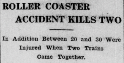 And it wasn’t only New York. At New Jersey’s Palisades Amusement Park in 1913, a rear-end collision between two coaster trains left two dead and scores injured, after the first train stalled on the incline.