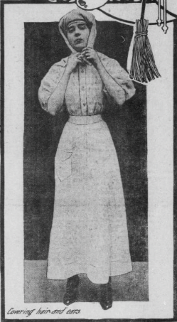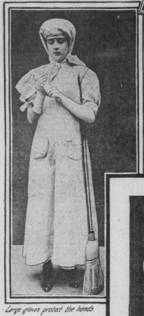 Large gloves protect the hands. They must be loose to offer no interference with the free and easy play of the muscles of the forearm. The hands can be kept soft and white, even by one who sweeps. The object is to keep the dust from closing the pores and from drying the skin.