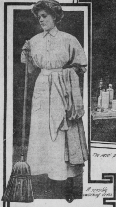 Short sleeves and a short skirt should figure prominently in the cut of the garment, while the soft collar will give  neatness and comfort to the sweeper.