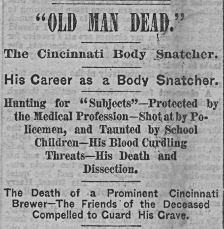 Benjamin Harrison, who would become President just a decade later, wrote an open letter to the citizens of Cincinnati. He called the body snatchers and the doctors who employed them “ghouls” and “receivers of stolen goods.”