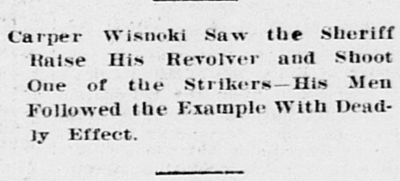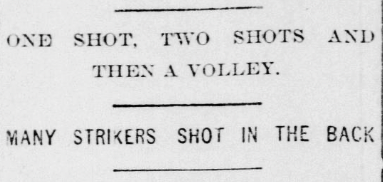 The deputies opened fire into the crowd. They fired at close range. They fired as the miners turned and ran.