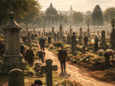 The Battle of Calvary Cemetery November, 1883. 8:00 PM. Calvary Cemetery, Long Island. The air is thick with the smell of turned soil and the…